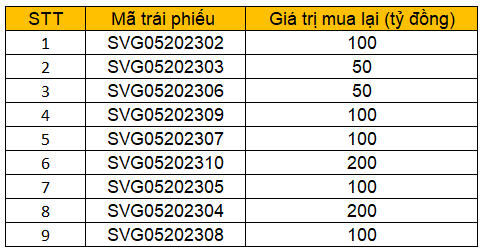 Danh sách các lô trái phiếu được Sovico Group mua lại trong ngày 5/2
