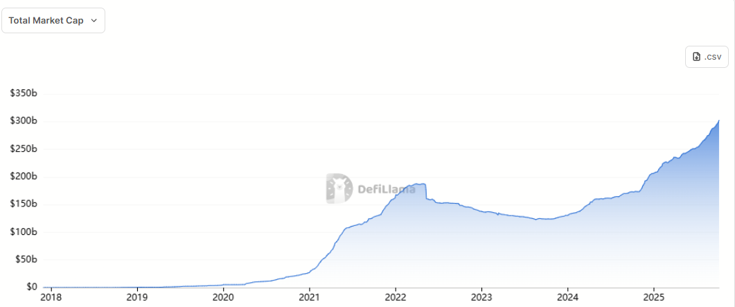 Vốn hóa stablecoin cán mốc 300 tỷ USD (Nguồn: DeFiLlama)