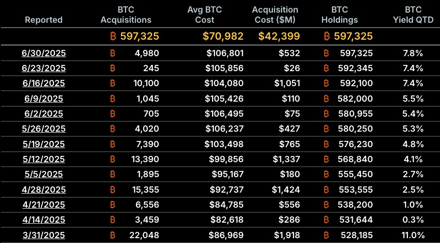 Các giao dịch mua Bitcoin của Strategy kể từ đầu quý 2 (Nguồn: Strategy)