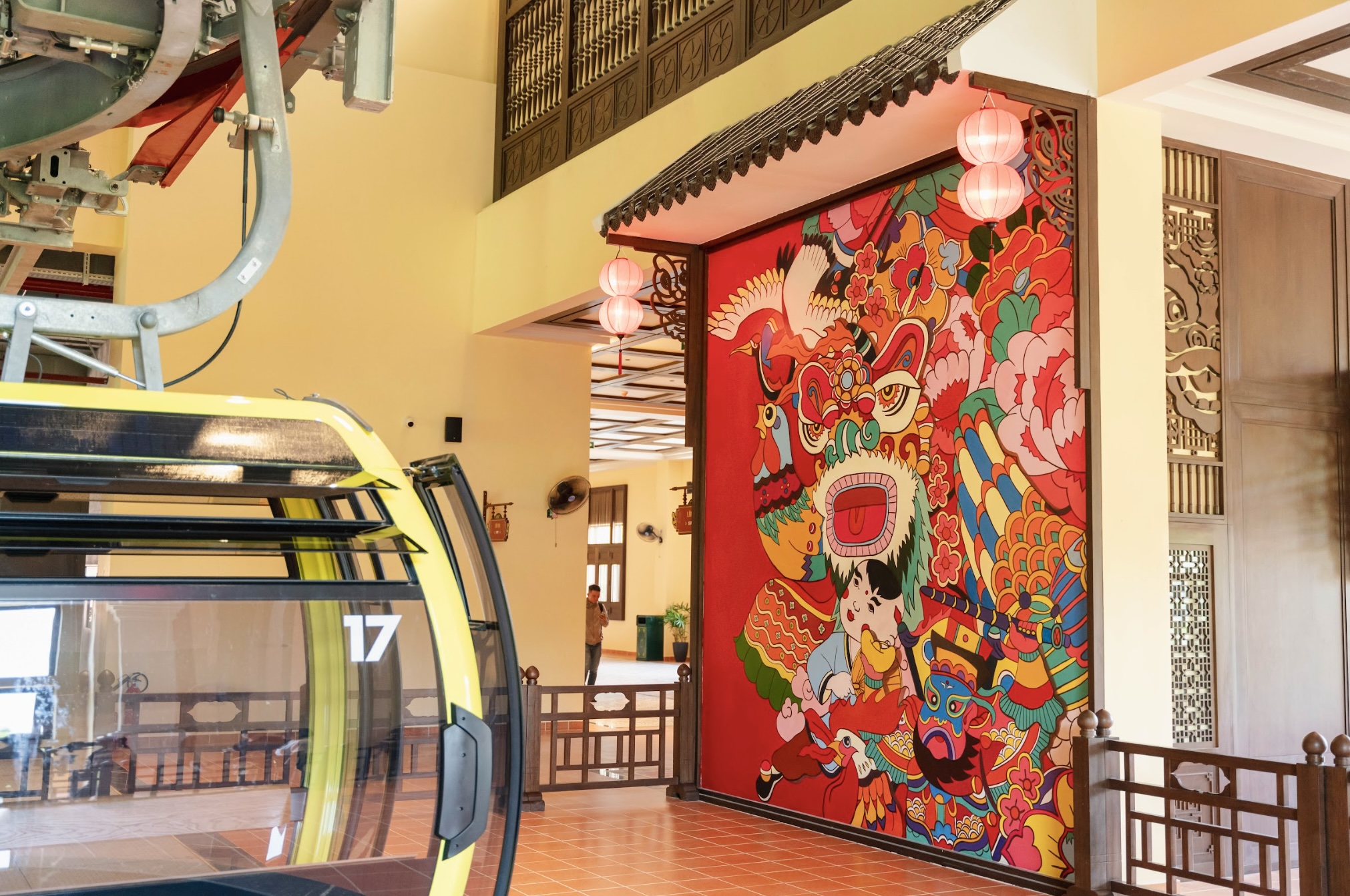Ngay từ những bước chân đầu tiên tại nhà ga đi Hội An 2, du khách sẽ cảm nhận được một không gian văn hóa đậm đà bản sắc Việt. Lấy cảm hứng từ nghệ thuật Múa Lân – một biểu tượng linh thiêng, tượng trưng cho niềm vui, sự may mắn và không khí lễ hội rộn ràng của người Việt Nam, nhà ga Hội An 2 được thiết kế tựa như một "sân khấu văn hóa" sống động.