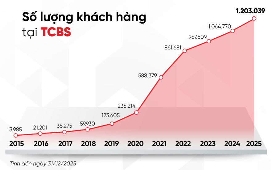 Tính đến ngày 31/12/2025, tổng tài sản của TCBS đạt 80.632 tỷ đồng, tăng 51% so với cuối năm 2024, chủ yếu nhờ mở rộng hoạt động cho vay ký quỹ và gia tăng đầu tư vào các tài sản tài chính.