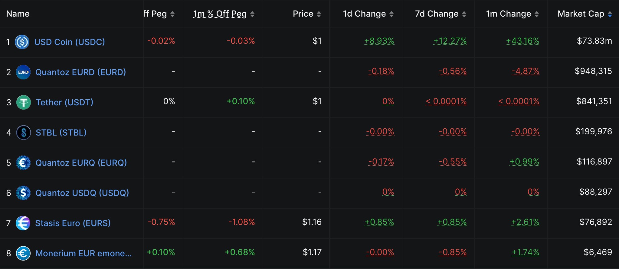 Top các đồng stablecoin trên Algorand theo vốn hóa thị trường (Nguồn: DefiLlama)