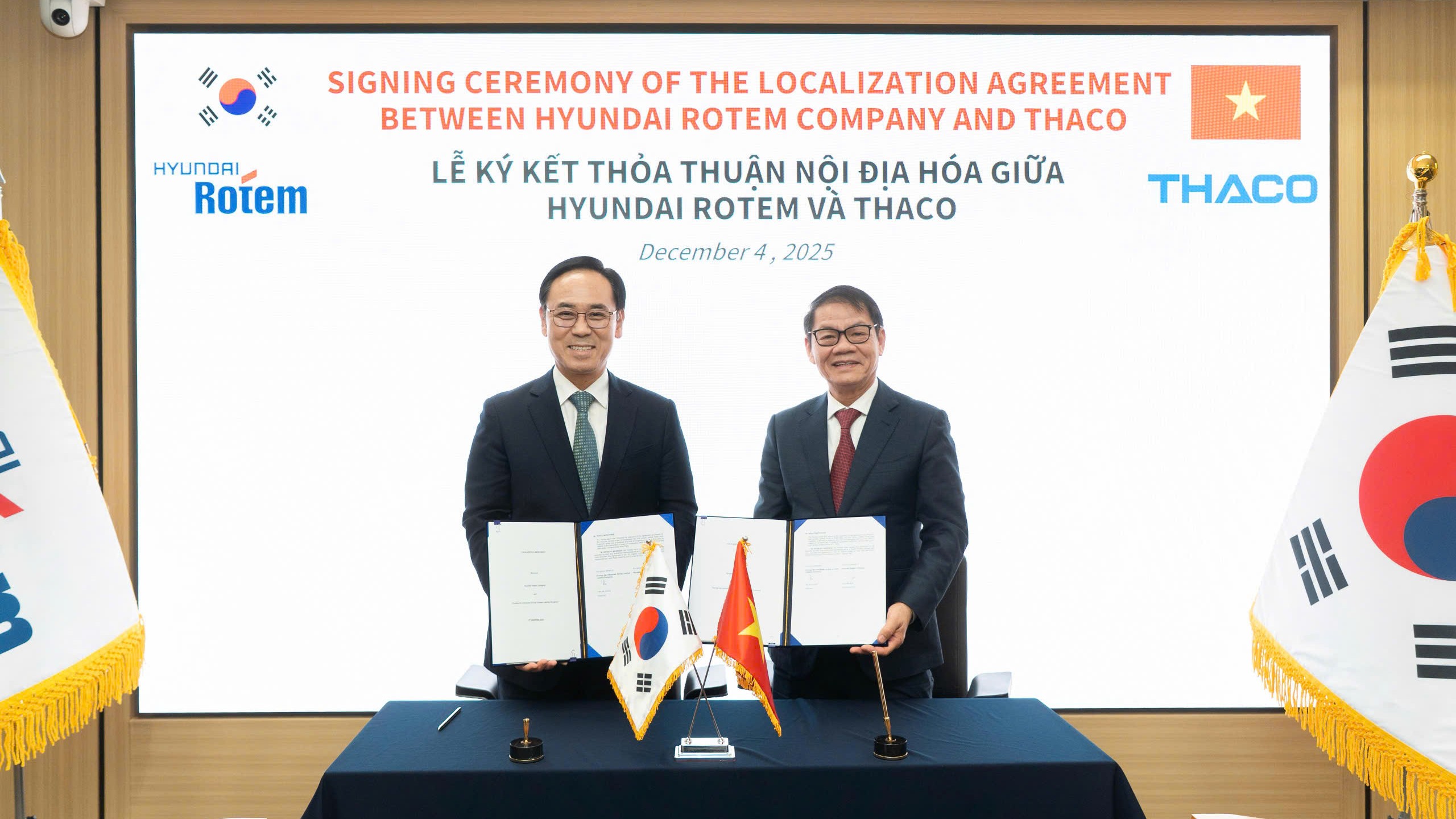 Thỏa thuận được ký giữa ông Lee Yong-bae – Tổng giám đốc Hyundai Rotem và ông Trần Bá Dương – Chủ tịch HĐQT Thaco, trong bối cảnh Việt Nam đẩy mạnh chiến lược phát triển công nghiệp đường sắt và mở rộng mạng lưới giao thông quốc gia.