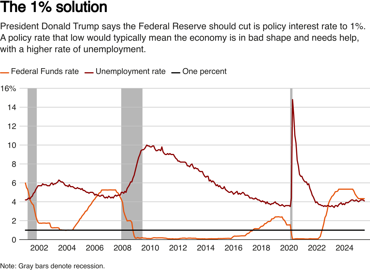 Trong vòng 25 năm qua, lãi suất 1% không phải là chưa từng xuất hiện – nhưng nó không hề gắn liền với giai đoạn thịnh vượng. Thường thì, nó đi kèm với tỷ lệ thất nghiệp từ 6% trở lên.