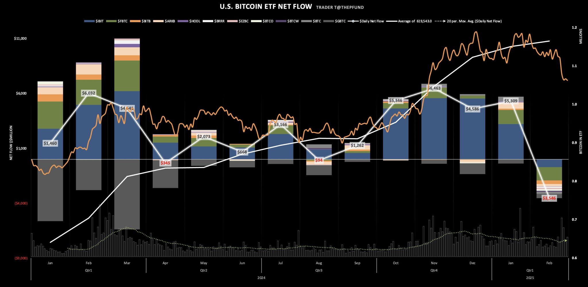 3,5 tỷ USD tháo chạy khỏi các quỹ ETF Bitcoin trong tháng 2 (Nguồn: TraderT)