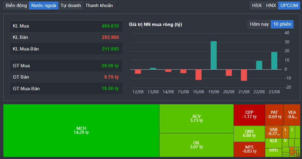 Trên UPCOM, khối ngoại mua ròng 19,4 tỷ đồng.