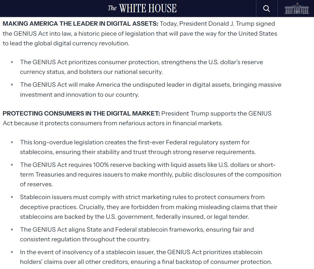 Trích đoạn trong đạo luật GENIUS Act được ký ban hành vào ngày 18/7 (Nguồn: White House)