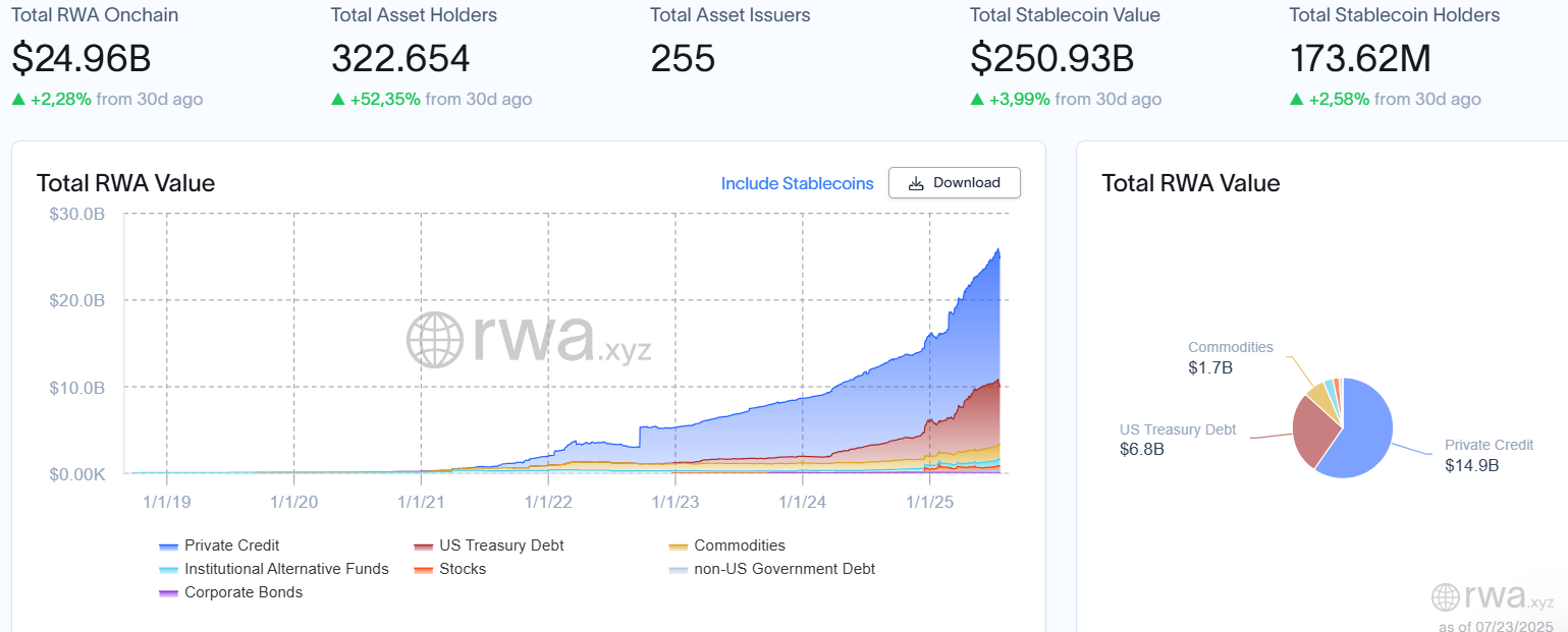 Dù thường không được tính vào chỉ số RWA, stablecoin thực chất được hỗ trợ bởi các tài sản hữu hình như trái phiếu chính phủ, điều khiến chúng trở thành một phần quan trọng trong hệ sinh thái tài sản thật được số hóa.