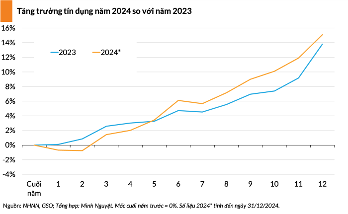 Năm 2024, tín dụng đạt tăng trưởng 15,08%, đạt mục tiêu đề ra trong năm (15%).