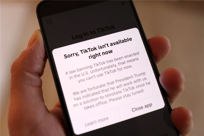 Ứng dụng TikTok với thông báo "Rất tiếc, TikTok hiện không khả dụng" trong ngày bắt đầu lệnh cấm tại Mỹ 19/1. Ảnh: Reuters.