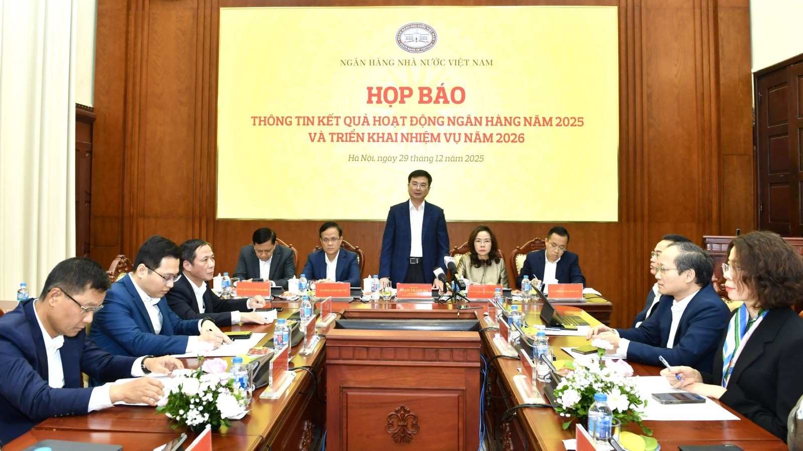 Phó Thống đốc NHNN Phạm Thanh Hà chủ trì Họp báo chiều 29/12 (Ảnh: SBV)