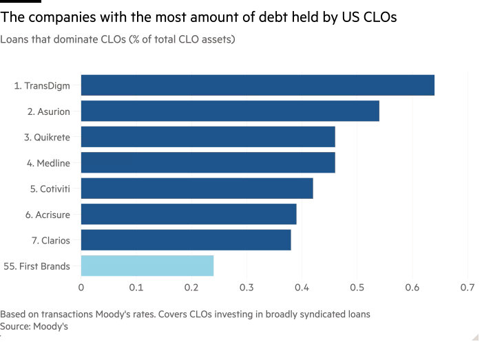 First Brands chỉ đứng thứ 55 trong danh mục các khoản vay CLO nhưng sự sụp đổ của doanh nghiệp này vẫn đủ khiến thị trường tín dụng đòn bẩy 2.000 tỷ USD chao đảo