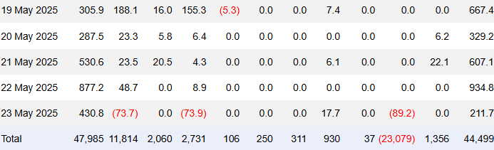 Các quỹ ETF Bitcoin Spot tại Mỹ tiếp tục thu hút dòng vốn lớn, ghi nhận 2,75 tỷ USD dòng vốn vào ròng trong tuần qua (19/5 - 25/5). Trong đó:
