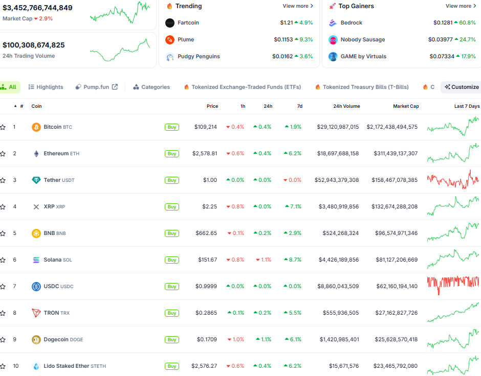 Thị trường crypto ngày 4/7 (Nguồn: CoinGecko)