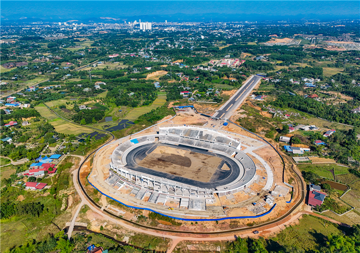 Nhiều hạng mục cơ bản đã hoàn thành như: San nền; thảm nhựa bê tông mặt đường tuyến chính; đường giao thông tuyến hoàn trả T1, T2.1; mương thủy lợi hoàn trả; hệ thống cấp thoát nước dọc tuyến đường chính và bên ngoài sân vận động; hạng mục bể ngầm 200m3 (2 bể); bể xử lý nước thải; phần thô khán đài A,C; phần xây trát khán đài A; phần điện nước trong nhà khán đài A...