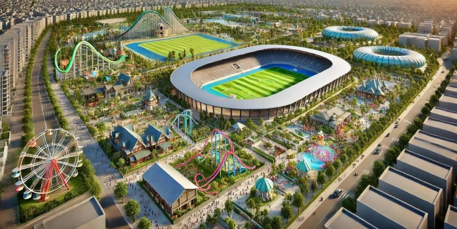 Trong đó, tổ hợp thể thao tiêu chuẩn thế vận hội Olympic với tổng vốn đầu tư dự kiến khoảng 1,3 tỷ USD, gồm các công trình thể thao đạt chuẩn quốc tế với điểm nhấn là sân vận động (SVĐ) sức chứa 60.000 người, được đầu tư xây dựng hiện đại, đẳng cấp Tổ hợp công viên chuyên đề, vui chơi giải trí có tổng vốn đầu tư khoảng 3,2 tỷ USD, bao gồm các công viên chuyên đề, khu vui chơi giải trí theo mô hình nổi tiếng trên thế giới.