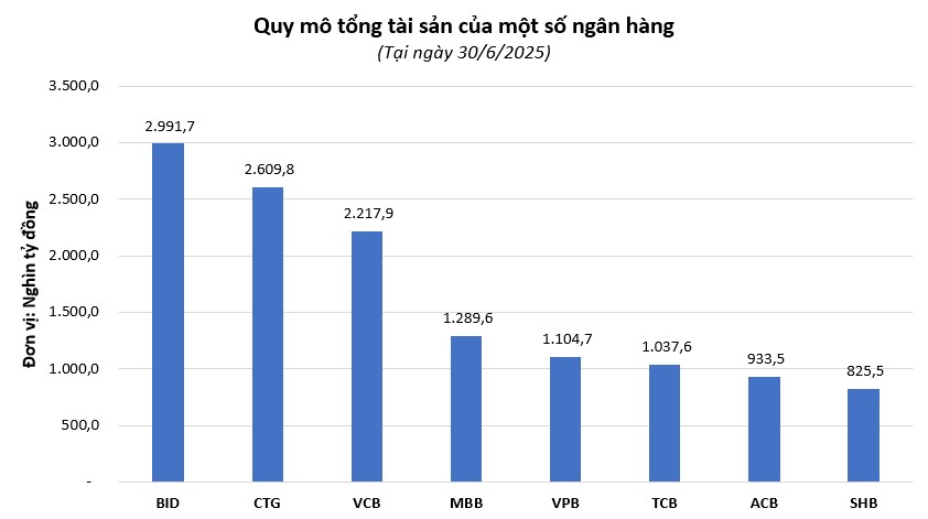 Tính đến cuối tháng 6/2025, tổng tài sản của Ngân hàng TMCP Đầu tư và Phát triển Việt Nam (BIDV – Mã CK: BID) đạt 2,99 triệu tỷ đồng, tăng 8,3% so với đầu năm và gần bằng tổng tài sản của 3 ngân hàng tư nhân lớn nhất là VPBank, Techcombank và ACB cộng lại.