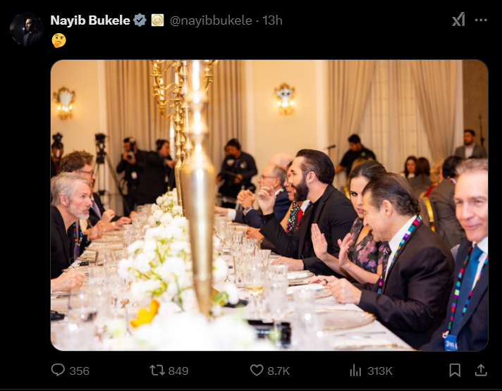 Tổng thống Nayib Bukele vừa có bữa tối thân mật cùng tỷ phú Michael Saylor - CEO Strategy - người đã đổ hàng tỷ USD vào Bitcoin.