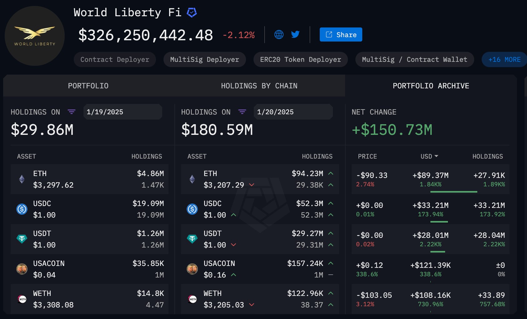 Danh mục đầu tư của WLFI vào ngày 20/1. (Nguồn: Arkham)