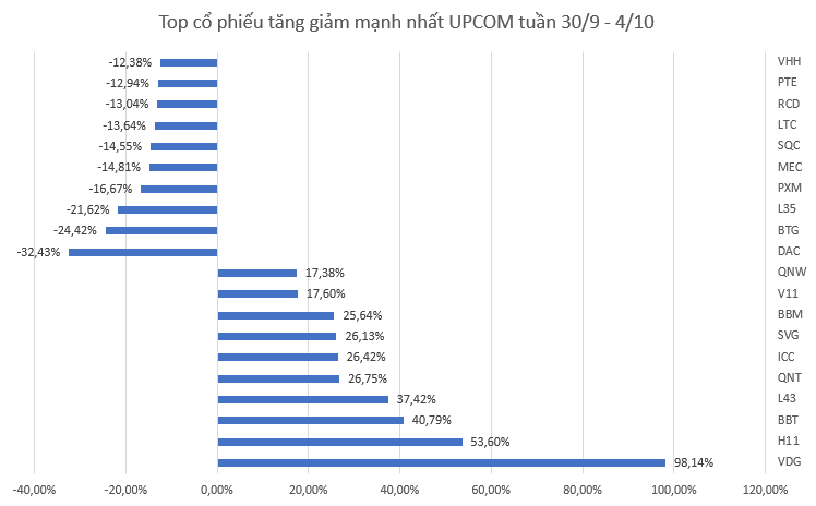 Ngoài VDG, nhiều mã cổ phiếu khác trên UPCoM cũng ghi nhận mức tăng ấn tượng trong tuần như: H11 (+53,6%), BBT (40,79%) hay L43 (+37,42%)./.