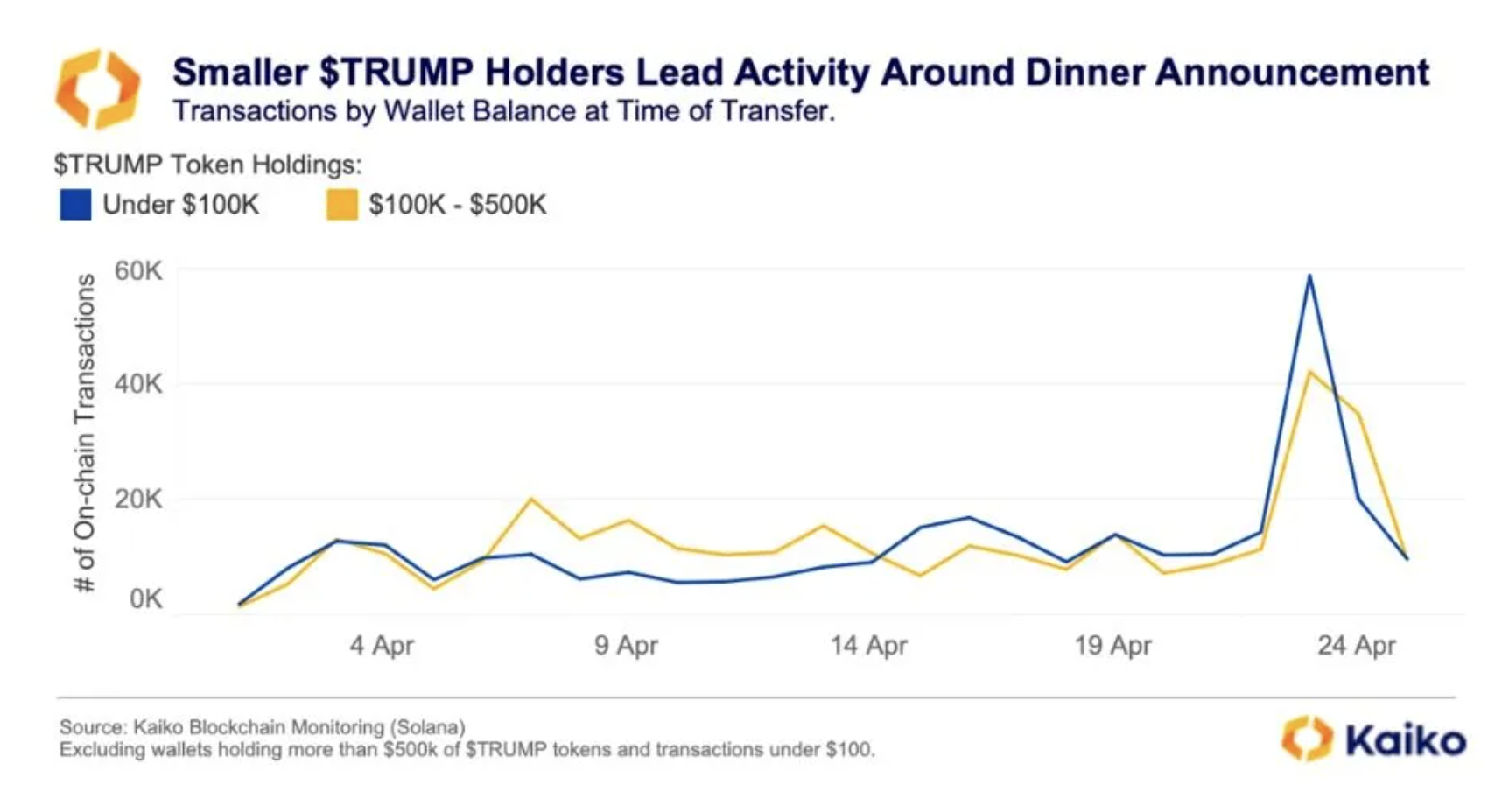 Theo dữ liệu của Kaiko, gần 10.000 địa chỉ ví đã thực hiện giao dịch ngay khi thông báo được phát ra. Con số này tăng gấp 3 lần so với ngày trước đó – và phần lớn là các ví sở hữu dưới 100.000 USD.