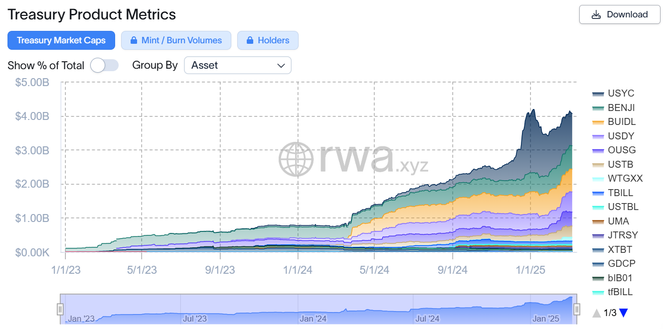 Thị trường trái phiếu kho bạc Mỹ dạng token đã tăng thêm 1,57 tỷ USD - vượt ngưỡng 4 tỷ USD trong hơn 100 ngày qua. Đây là minh chứng cho làn sóng chấp nhận mạnh mẽ từ giới đầu tư tổ chức.