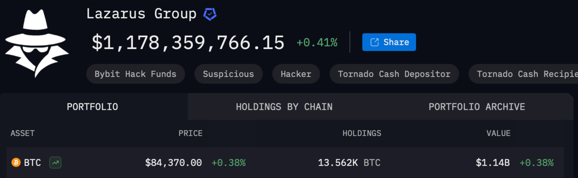 Số BTC của Lazarus Group đang nắm giữ có trị giá lên tới 1,14 tỷ USD (Nguồn: Arkham Intelligence)