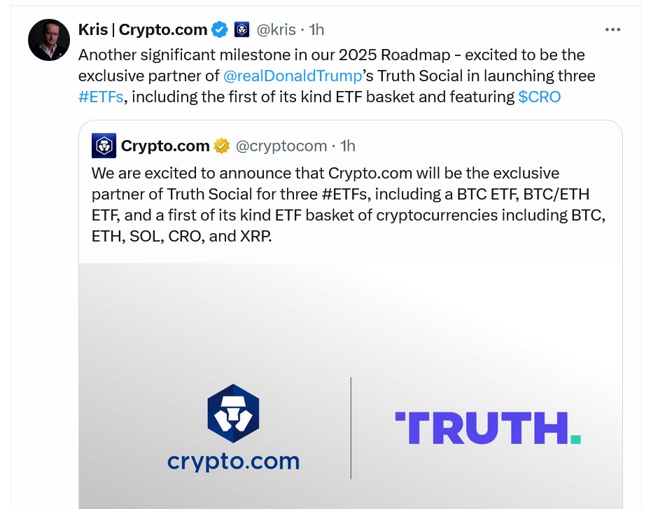 CEO Crypto.com Kris Marszalek chia sẻ thông tin này trên mạng xã hội X