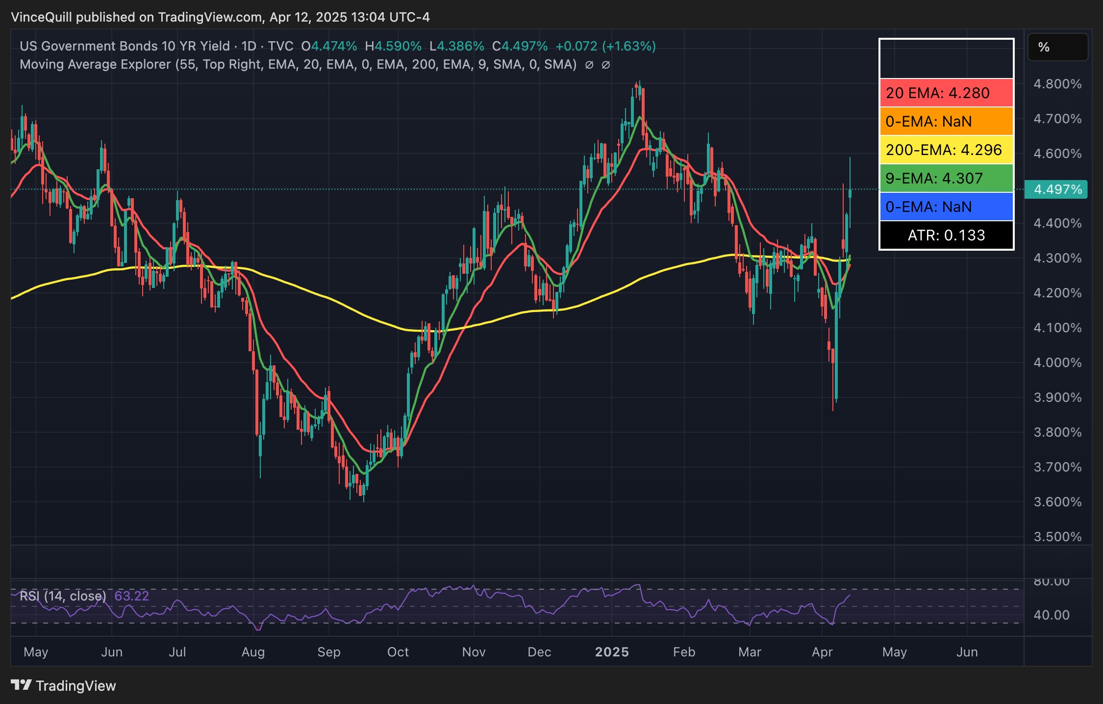 Lợi suất trái phiếu chính phủ Mỹ kỳ hạn 10 năm tăng đột biến sau các chính sách của ông Trump. (Nguồn: TradingView)