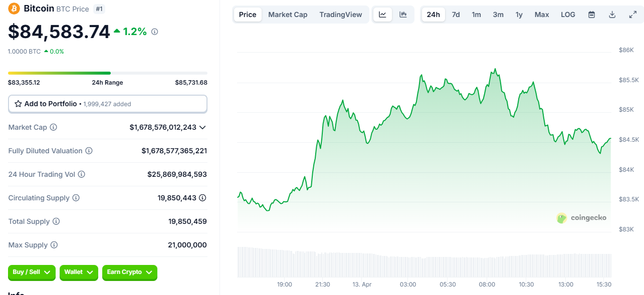 Bitcoin đã vượt mốc 84.000 USD ngay trong ngày 12/4, cho thấy giới đầu tư crypto đang phản ứng nhanh với những tín hiệu vĩ mô tích cực từ Nhà Trắng.