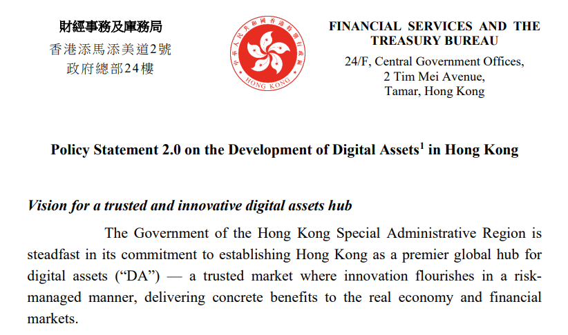 Chính sách Tài sản Số LEAP 2.0 của Hong Kong đã được công bố trong sự kỳ vọng giới truyền thông. Chính quyền Hong Kong cam kết xây dựng một khung pháp lý toàn diện, hợp nhất giấy phép và “mở rộng danh mục sản phẩm tài sản số hóa”.