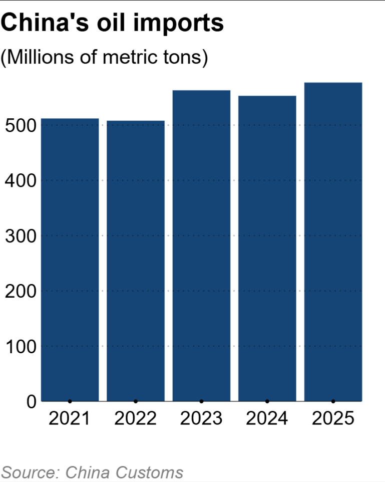 Một nửa lượng dầu thô nhập khẩu bằng đường biển của Trung Quốc phải đi qua eo biến Hormuz. Bắc Kinh cũng gặp khó trong việc nhập khẩu dầu từ Venezuela sau khi Mỹ tiến hành tấn công tại quốc gia Nam Mỹ này.