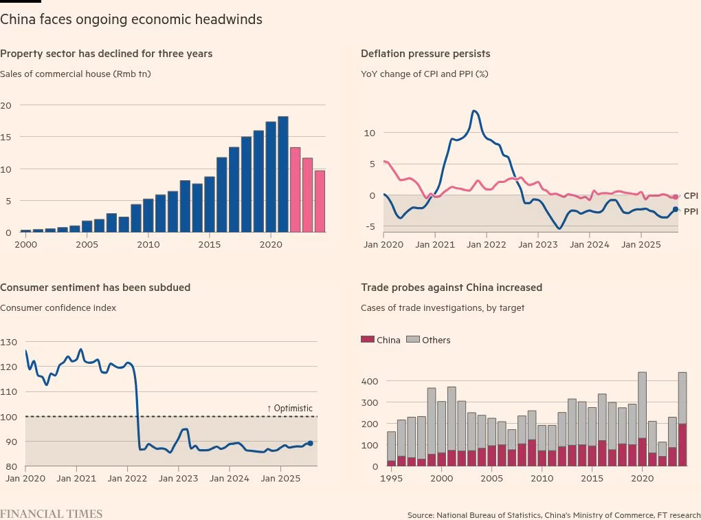 Các thách thức kinh tế chính của Trung Quốc – từ bất động sản, giảm phát đến niềm tin tiêu dùng (Nguồn: Financial Times)