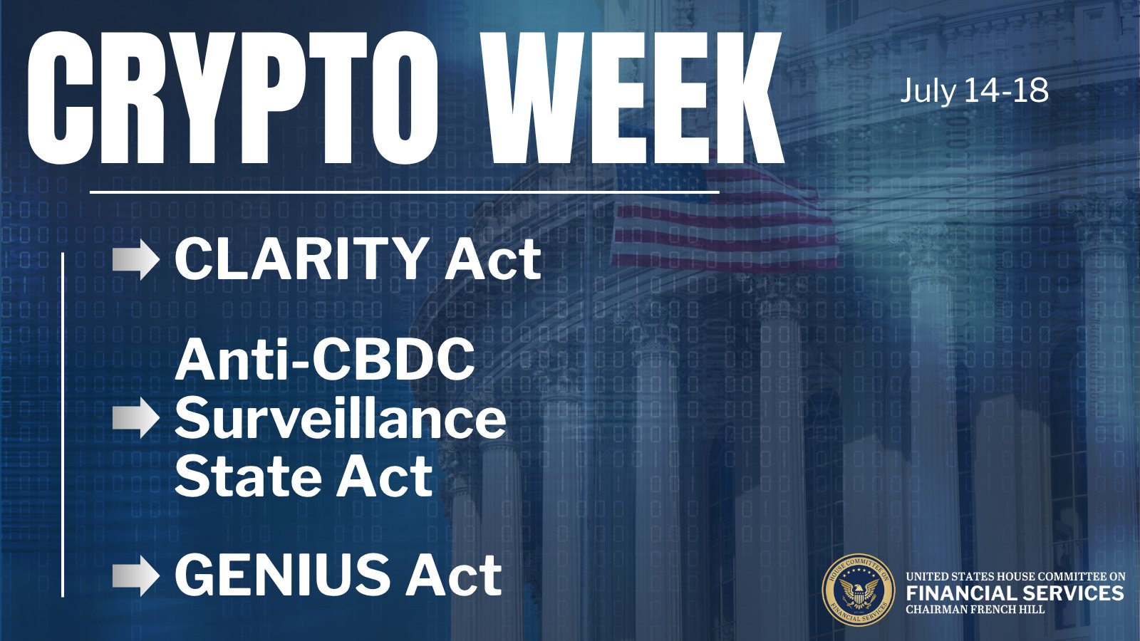 Dưới đây là ba dự luật trọng tâm sẽ được xem xét trong Tuần lễ Crypto bắt đầu từ ngày 14/7, theo thông báo từ Ủy ban Dịch vụ Tài chính Hạ viện Mỹ: