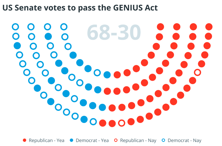 Thượng viện Mỹ thông qua GENIUS Act với tỷ lệ 68-30