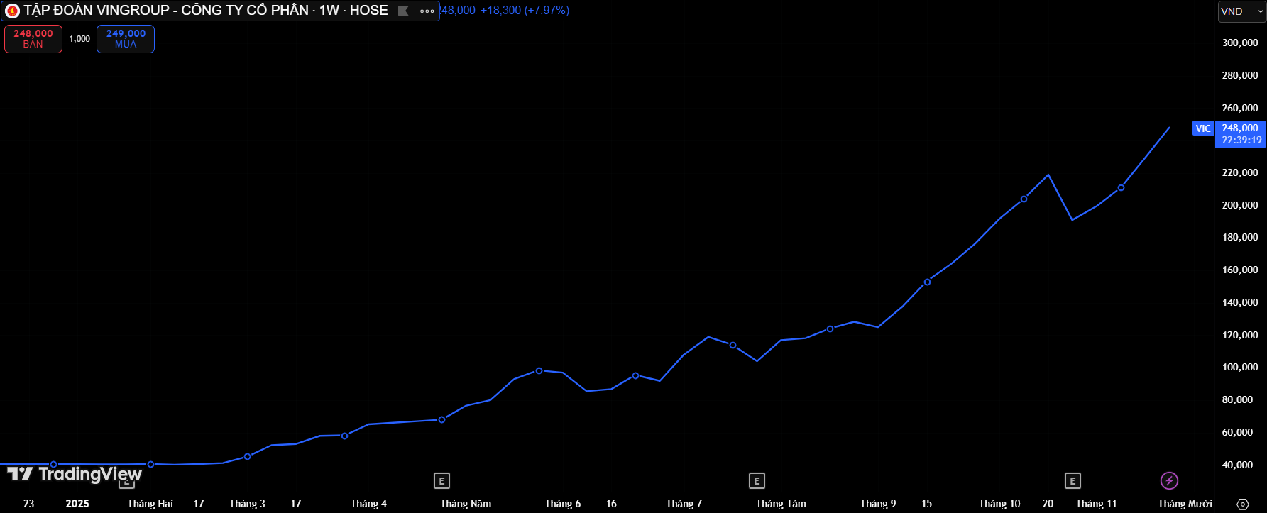Cổ phiếu VIC tăng 9 phiên liên tiếp, đạt kỷ lục mới 248.000 đồng/cp (Nguồn: Tradingview)