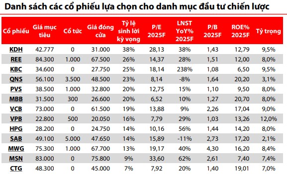 Đối với nhóm bán lẻ và hàng tiêu dùng, VDSC duy trì tỷ trọng với các cổ phiếu thiết yếu, mang tính phòng thủ và ổn định trong chu kỳ kinh tế, gồm: SAB, MWG, MSN, QNS.