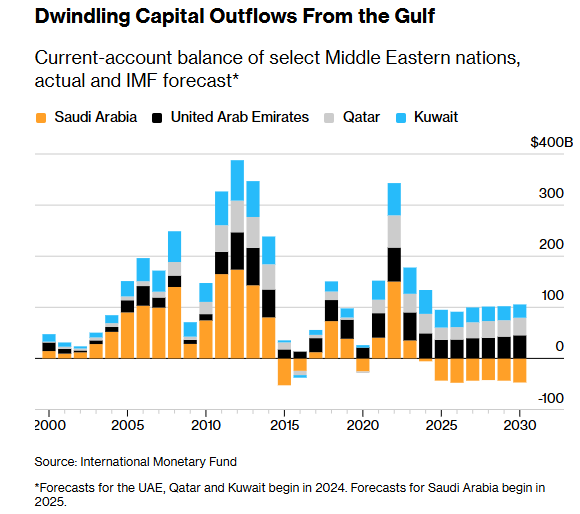 Cán cân vãng lai của các quốc gia vùng Vịnh (Đồ họa: Bloomberg)