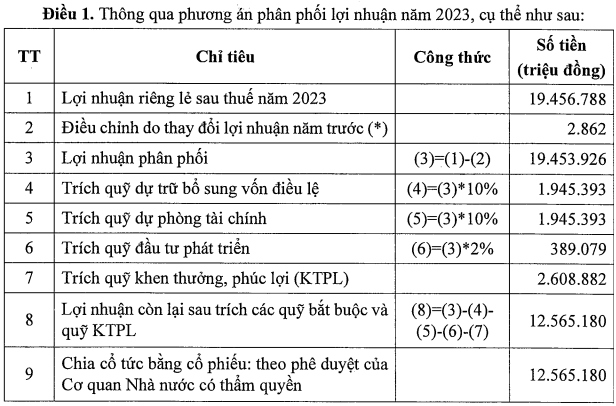 Ngoài ra, VietinBank cũng đề xuất giữ lại toàn bộ lợi nhuận hàng năm trong giai đoạn 2024 - 2028 để tăng vốn điều lệ, nâng cao năng lực tài chính, mở rộng dư địa tăng trưởng tín dụng.