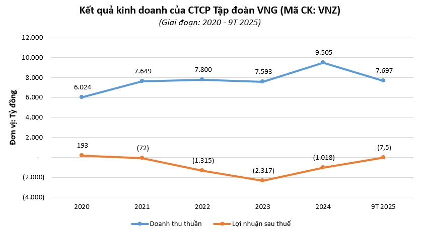 Lũy kế 9 tháng đầu năm 2025, VNG lỗ sau thuế 7,5 tỷ đồng, thấp hơn đáng kể so với khoản lỗ 596,8 tỷ đồng trong 9 tháng đầu năm 2024. Kết quả này cũng có thể đánh giá là "tích cực", khi so sánh với mức lỗ sau thuế dự kiến 620 tỷ đồng mà VNG đã "đề ra" cho năm 2025.