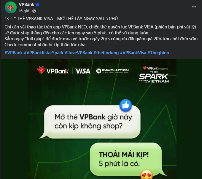 Bài đăng quảng bá app VPBank NEO đi liền cùng chiến dịch K-Star Spark