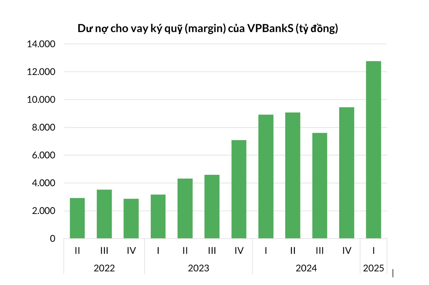 Dư nợ margin của VPBankS từ quý II/2022 đến quý I/2025