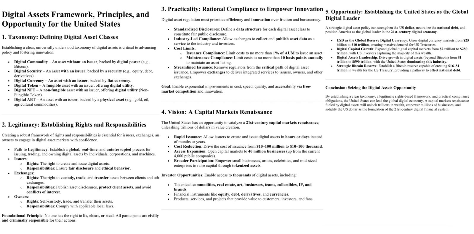 Theo đó, ông chủ nhà Strategy đã phác thảo những nét chính giúp Mỹ giải quyết vấn đề nợ quốc gia - hiện đang ở mức 36.000 tỷ USD. Đồng thời, bản kế hoạch này sẽ giúp Ủy ban Chứng khoán và Hối đoái Mỹ (SEC) xây dựng khuôn khổ pháp lý về tài sản số.